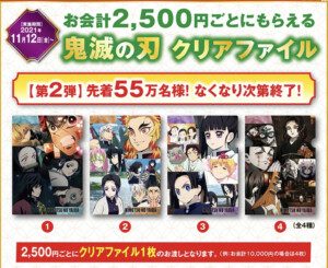 すでに第一弾は終了しており、第二弾(クリアファイル)が開始されています。