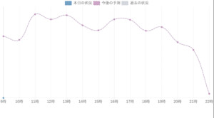 するとこんなグラフが表示され、「本日の状況」「今後の予測」「過去の状況」が一括で閲覧できるようになります!(下の図は営業時間外に表示したため、今後の予測のみが表示されています)