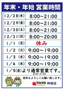 タイヨーの年末年始2024(正月)の営業時間、混雑状況についてまとめました。