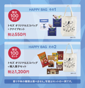 トモズのオンラインショップでは12月15日〜1月14日までの期間限定で「happy bag」を販売しています。