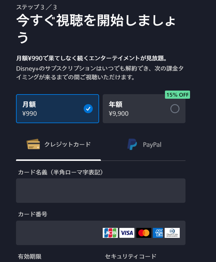 ・Disney+公式ホームページでの解約をする(クレジットカード、PayPalで支払)