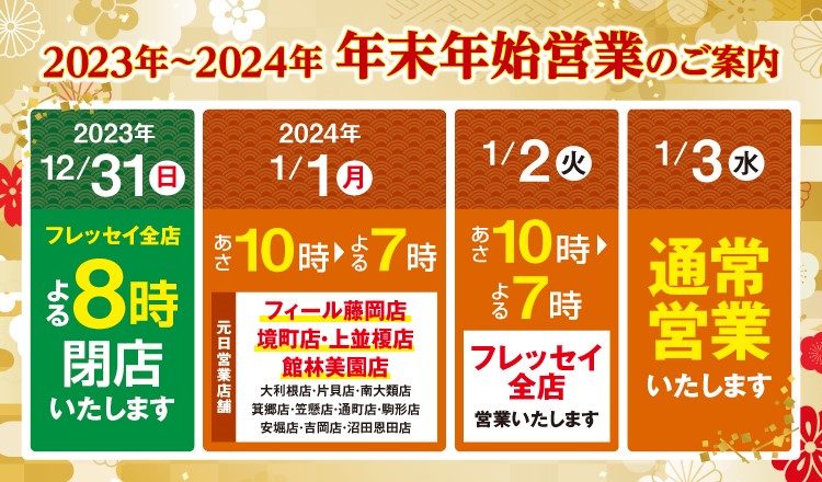 2023年12月31日(日) フレッセイ全店 9時開店~20時閉店