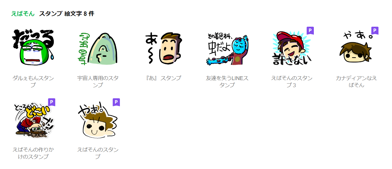 そのうちの1つ「えばそんのスタンプ」の中身を一部紹介します。