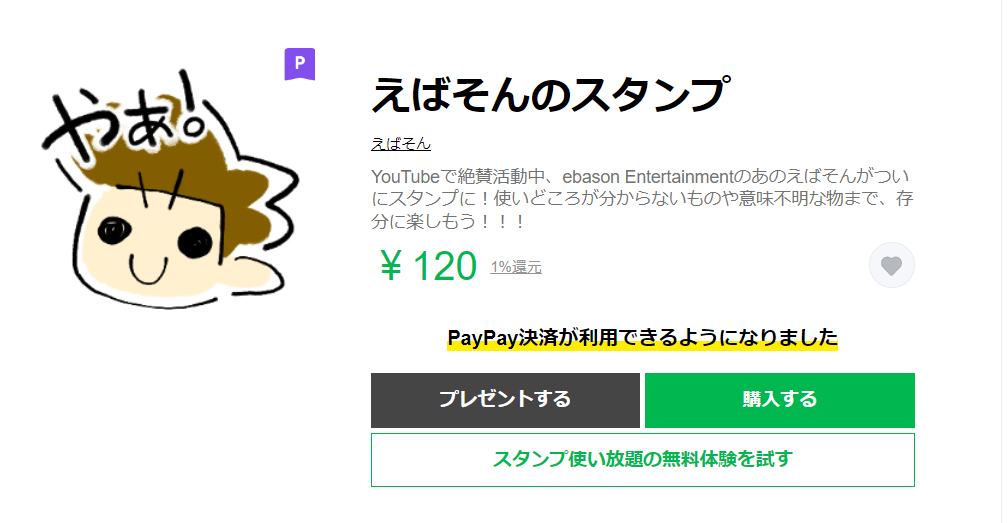 1種類1セット40個のスタンプを120円というお手ごろな価格で購入できるので、えばそんファンには見逃せないですね!