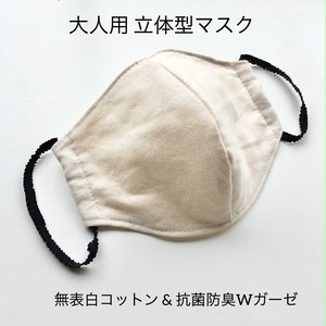 国産無漂白コットンと抗菌防臭Wガーゼで出来た立体型マスク。